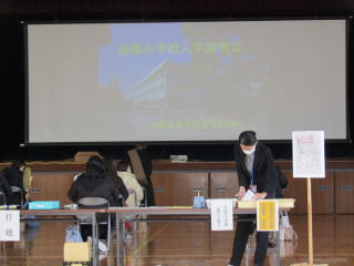 本日、午後より体育館において入学説明会@を行いました。来年度、本校に入学されるお子さんの保護者に来校いただき、教育課程や日課・行事等についての説明を聞いていただきました。その後、物品販売がありました。