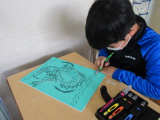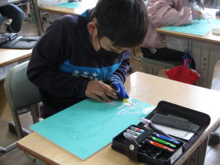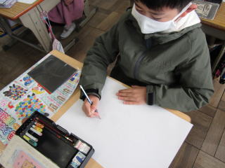 | 2月3日(木) 紙はんがの下絵を描いたよ(1年生:図画工作科) |