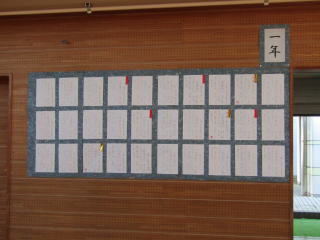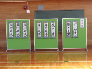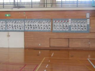 昨日より体育館において書き初め展示をしています。授業参観が中止となったため、本年度の展示は体育館となりました。