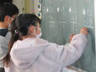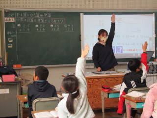 3年生の算数科の授業の1コマです。単元は「小数」。本時は小数のたし算とひき算の筆算の学習です。