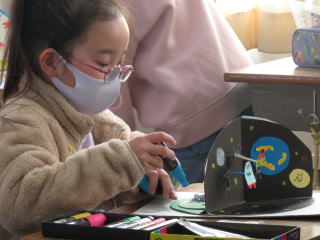 家の中、星空、海の上・・・様々な場面を考えて試行錯誤しながら作品を作る姿がありました。 |