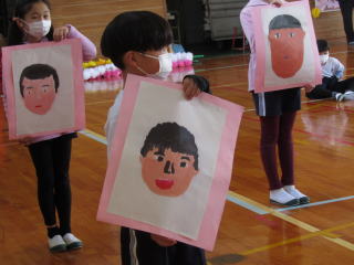 4年生は、6年生との思い出を面白くコント仕立てで発表。1年生はエビカニクスのダンスを可愛らしく踊る姿が・・・6年生も一緒になって2回も踊りました。2年生は、6年生の似顔絵を一人1枚描き、誰の似顔絵を描いたのかをクイズで交流しました。3年生は、6年生がこれまでの運動会で披露したダンスを発表し、それを懐かしむ6年生。最後に5年生は6年生有志との縄跳び対決や劇仕立ての卒業認定クイズで盛り上がりました。