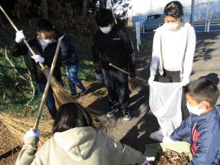 午前中の時間を使って、今日は地域に出向き、奉仕活動を行いました。通学路のごみ拾いや集合場所の掃き掃除をしました。
