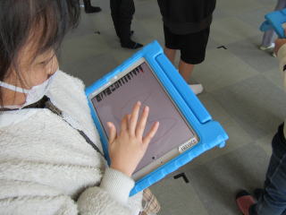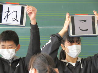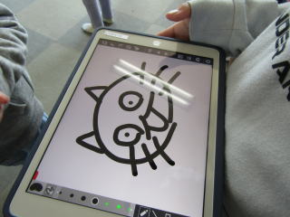 交流内容は、タブレットを活用したイラスト伝言ゲーム。本日のお題は「ねこ」。6年生と2年生の子どもたちはグループを作った後、ソーシャルディスタンスを保ちながら1列になります。前から順番に、オリジナルの「ねこ」のイラストを描いていきます。心温まるひとときとなりました。 |