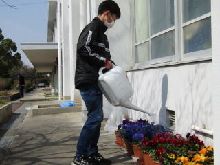 花もようやく色とりどりに咲き出しました。6年生の巣立ちの日は、もう目の前です。 |
