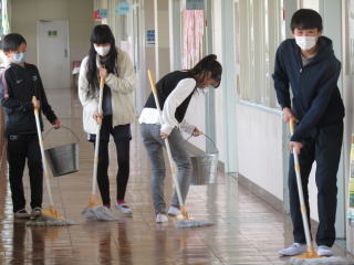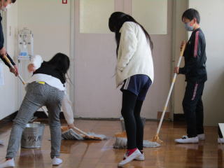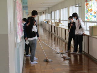 特に、各学年フロアのワックスがけは連携プレーで見事な活動になりました。6年生のおかげで、校舎内がピカピカになりました。 |
