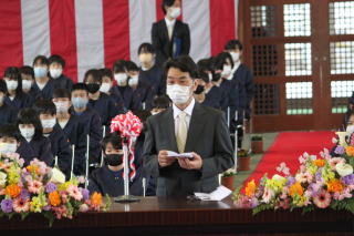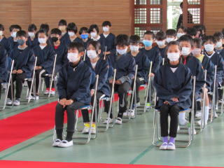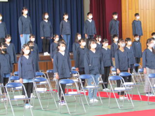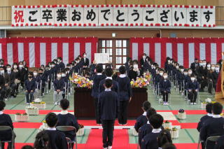 令和3年度卒業式が行われました。会場には卒業生と保護者、そして在校生を代表して5年生が同席し、厳かな中にも温かな式となりました。また、1〜4年生は教室に待機し、ZOOM配信された会場の映像を視聴しました。