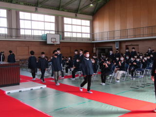 入場から卒業証書授与、在校生や卒業生の言葉・・・退場までの流れを一つひとつ確認しました。