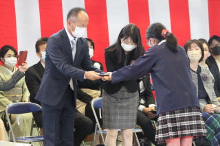 来賓として教育委員会教育委員、PTA会長より祝辞をいただき、華を添えていただきました。