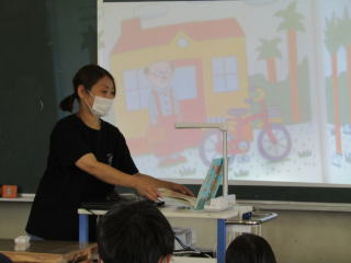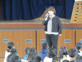 今日は、月に一度の「おはなし会みなみ」の日です。各教室に読み聞かせのボランテイアの方々が入ってくださり、絵本を読んでいただきました。