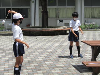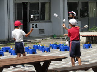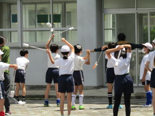 一昨日よりスタートしたトーチを回す練習。野外学習へ向けて実行委員の子どもたちは、時間を惜しんで練習に励み、少しずつ着実にレベルアップしています。