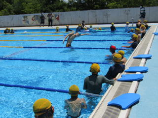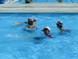 どの学年の子どもたちも水泳の授業を楽しんでいます。水に慣れ、顔を水につけ、浮く、進む・・・少しずつレベルを上げていく様は見事です。