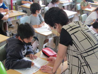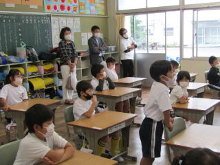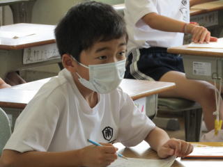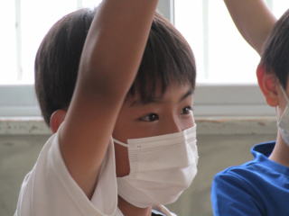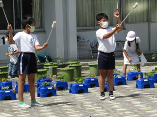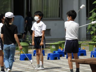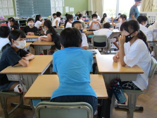 コロナ感染症対策として、無言で取り組む様子は以前と異なりますが、先生の指示をよく聞き、整然と活動する子どもたちを見ていると、清々しい気持ちになります。 |