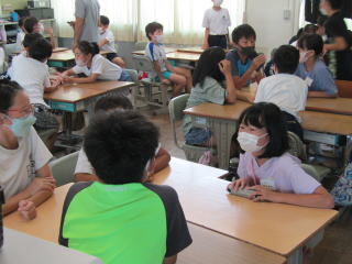 毎週木曜日の給食後の15分間、「そよ風タイム」が設定されています。各教室では学年ごとにテーマを決め、子どもたちが語り合う活動に臨みます。