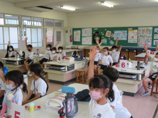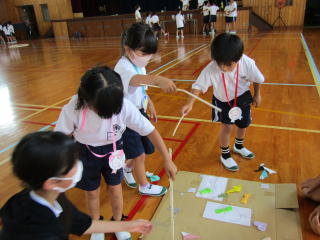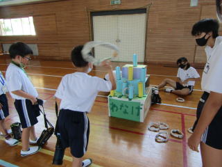 6年生が総合的な学習の一環として、他学年(1年生)との交流を企画し、親睦を深める時間を設定しました。