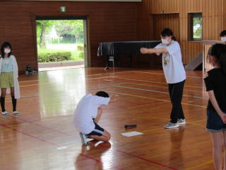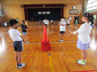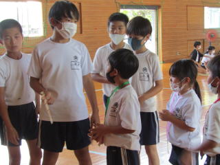 いよいよ一週間後に迫った5年生の野外学習。今日は体育館でキャンプファイヤーの流れを確認しました。