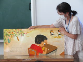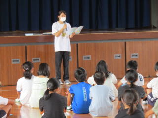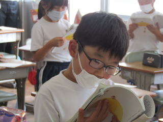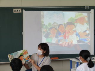 今日は月に一度の「おはなし会みなみ」の日。全校の子どもたちが朝から楽しみにしています。読み聞かせボランティアの皆さんが、様々な絵本を紹介してくださります。