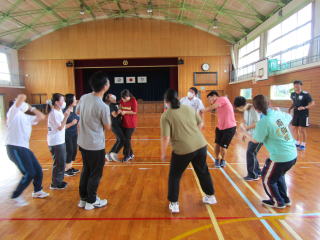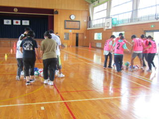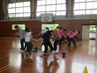 JFAより講師をお招きし、職員を対象にした体育実技の研修を行いました。各自で新聞紙を丸めてマイボールを作り、実技研修に臨みました。研修の導入はアイスブレイク。手つなぎボール運びでチームの連帯感を確認しました。次に、川渡りオニごっこやナンバーコールゲームにチャレンジ。チームで作戦を考えました。最後は3対3のゲーム形式での対戦を行い、実技研修をしめくくりました。