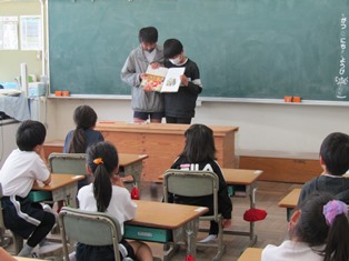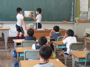 | 5月12日(金) 朝の読書 1・2年運動会練習 【朝の読書】 朝の読書の時間に、6年生が1年生に読み聞かせをしてくれます。お兄さんたちの読み聞かせに、1年生は夢中になっています。 【運動会練習:1・2年生】 ラジオ体操をやりました。運動の順番を覚えながら、一生懸命に体を動かしていました。 ラジオ体操の後には、初めてダンスの練習もしました。当日、どんなかわいい姿が見れらるか、楽しみですね。 |