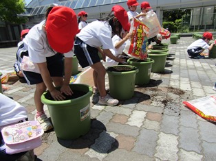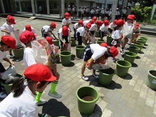 | 5月16日(火) 3・4年生 運動会練習1年生 アサガオの種まき 【運動会練習:3・4年生】 運動会では、3年生は「玉入れ」、4年生は「台風の目」を行います。今日は、初めての練習でした。運動会当日まで、練習時間は短いですが、クラスで協力をして、よい結果が残せるといいですね。 【アサガオの種をまいたよ】 1年生は、アサガオの種まきをしました。大きな植木鉢に土を入れ、小さな種をまきました。芽が出るのが楽しみですね。 |