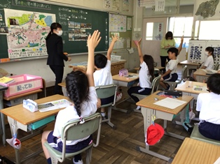 | 5月18日(木) リレー練習 3年1組:社会科授業 【リレー練習】 南小タイムのリレー練習の時間に、東海学園大学の学生さんがバトンパスの仕方を教えてくれました。お手本を見せてもらった時には、力強い走りに「おー!」と歓声があがりました。しっかりとバトンを繋ぐコツを教えてもらい、練習に励みました。当日も、バトンが上手くつながるといいですね。 【3年1組:社会科授業】 今年度、第一回目の授業研究会が3年1組で行われました。社会科「ガイドさんになってみよし市のすてきを紹介しよう」という学習です。 今日は、「市の中心部」の特徴を探し、考えました。「お店が多いよ」「〇〇センターが多いね」「公共施設がたくさんあるよ」と、たくさん見つけていました。ペア対話でも、積極的に自分の考えを友達に伝える姿が見られ、ほほえましかったです。 みよし市の「みなよし・なかよし・きたよし」の学習を終えると、校外学習で学んだ場所を訪ねる予定です。これからの学びも楽しそうです。 |