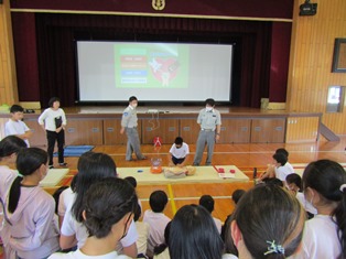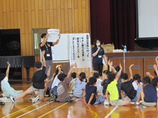 | 6月5日(月) 【球技大会激励会】 6月10日(土)の球技大会を前に、この日、激励会が行われました。サッカー部、バスケットボール部の代表が球技大会での意気込みを発表し、代表の児童からは激励の言葉が送られました。球技大会当日は、これまでの練習の成果を発揮し、精一杯頑張ってきてほしいですね。 【防犯教室】 5時間目には、防犯教室が行われました。豊田警察署の方から、危険な目に合わないためにどうしたらよいかということを教えていただきました。教えていただいたことを忘れずに、安全に過ごしていきましょう。 |