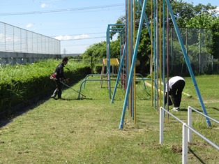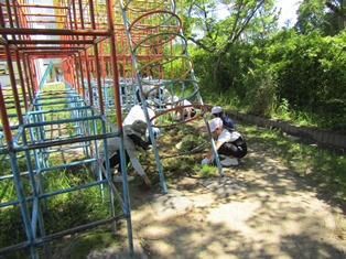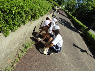 | 6月16日(金) 【5年生親子勤労・ 野外学習説明会】 久しぶりに晴れ間が見えた16日、5年親子・PTA役員環境部による除草活動と野外学習の説明会が行われました。 除草活動では、学校の周りの草抜きを行いました。短時間ではありましたが、みなさんのおかげでとてもきれいになりました。ありがとうございました。 その後には、野外学習の説明会が行われました。7月4日からの野外学習が、ますます楽しみになったことと思います。 |
