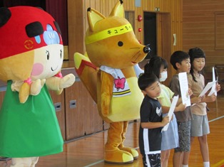 | 6月19日(月) 【3年生:出前授業】 【4年生:校外学習】 3年生は、市役所の産業振興課の方による出前授業を受けました。説明を聞いたりクイズに答えたりしながら、みよしの魅力について学びました。最後には、「キューちゃん」と「みよ獅子ちゃん」から、「みよし魅力広め隊」の入隊証を受け取りました。 4年生は「あいち環境学習プラザ」に行きました。施設の方に教えていただきながら実験を行ったり、専用タブレットを使って、環境を守るためのひみつを施設内で探したりしました。学びの多い一日となりました。 |