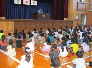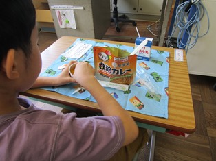 | 9月1日(金) 【夏休み明け集会・ 防災の日】 今日から学校生活が再開しました。全校集会の校長先生のお話では、夢を叶えた南部小の卒業生が持ち帰ってきた「甲子園の土」が紹介されました。夢をあきらめずにがんばった先輩がいるということは誇りですね。次に、安全な登下校について、クイズ形式で考えました。これからも、安全に登下校してほしいです。 9月1日「防災の日」の給食は、「救給カレー」でした。「救給カレー」は、災害時の非常食で、そのまま食べることができます。普段とは違った給食ではありましたが、おいしくいただきました。また、「オリジナル防災ソング」が流れ防災について考える機会となりました。 |