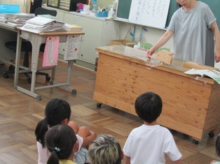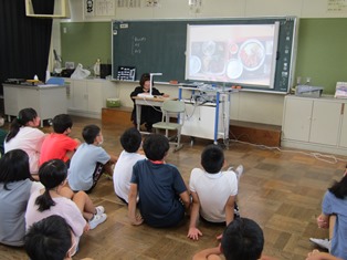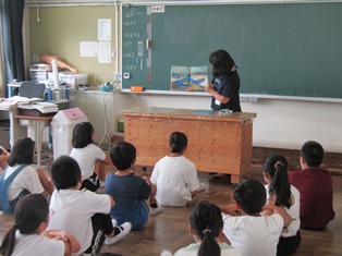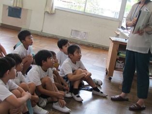 | 9月6日(水) 【おはなし会 「みなみ」】 今日の朝の読書の時間はおはなし会「みなみ」の方による読み聞かせがありました。今日は、スクリーンに映したり、積み木を使ったりと、いろいろな方法で読み語りが行われていました。どの学級でも、夢中になって聞く子どもたちの姿が見られました。 (6年1組は、校長先生による読み聞かせでした。) |