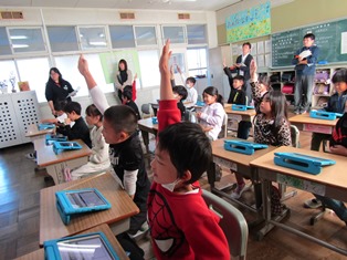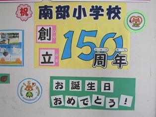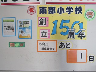 | 11月14日(火) 【あと一日…】 明日は、南部小学校創立記念日です。昇降口のカウントダウンも「150歳の誕生日まであと1日」になりました。明日は、6年生の実行委員が考えた「みんなで遊ぼう!~大なわ8の字チャレンジ~」があります。楽しみですね! 2年2組では、算数の研究授業が行われました。どの子もとても意欲的に手を挙げて発表していました。タブレットを使ってのペア学習では、自分の考えを、自信をもって相手に伝える姿が多く見られました。 |
