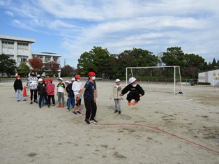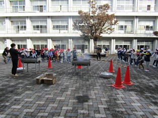 | 11月15日(水) 【南部小学校 創立150年!】 今日は、南部小学校の150歳の誕生日です。 中庭では、1・2年生が「150周年記念焼き芋大会」を開きました。1時間目に焼き始めたサツマイモは、4時間目の始めには美味しく焼き上がっていました。 午後からは、6年生実行委員主催の「みんなで遊ぼう!~大なわ8の字チャレンジ~」が行われました。全校を12個の縦割り班に分けて、大なわの8の字跳びが何回できるか挑戦しました。6年生が、なかなか縄に入れない1年生と手を繋いで一緒に跳ぼうとする姿が見られたり、高学年が連続で縄に入っていく様子を尊敬のまなざしで低学年が見ていたりと、全校で楽しい時間を過ごしました。 |