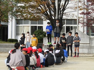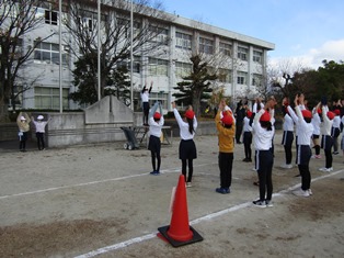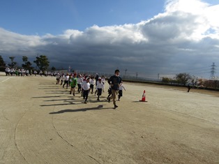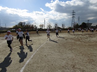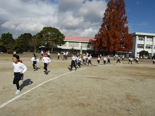 | 11月30日(木) 【耐寒訓練開始】 14日のマラソン大会に向けて、耐寒訓練が始まりました。準備体操をしっかりとし、1周目は先生の後ろについて並んで走ります。2周目からは、自分のペースで走ります。「〇周、走ることができたよ!」「明日は、もう1周多く走りたい!」など、南部っ子のがんばる姿がたくさん見られました。 |