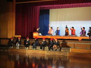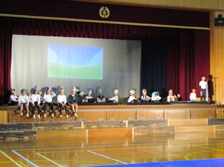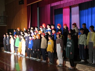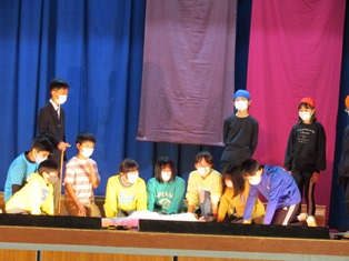| 11月22日(水) 【校内学芸会】 今日は、校内学芸会でした。どの学年も、張り切って発表しました。 (1年生、5年生の様子は、「当日までのお楽しみ…」です。) 裏方で5・6年生が楽器や大道具の準備・片づけ、照明の操作、幕間の窓・出入口の扉の開閉、演技前のアナウンス等、校内学芸会を支えてくれました。当日も、きっと頑張ってくれることと思います。 本番まであと少し。南部っ子みんなで心を合わせて頑張ります。 |