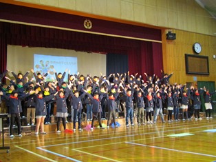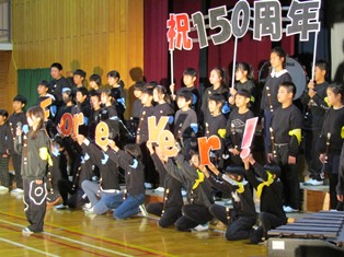 | 11月16日(木) 【頑張っています】 11月25日(土)の学芸会に向けて、どの学年も練習をがんばっています。今日は、2・4年の練習の様子を、少しだけ紹介します。➡➡➡ 今日の給食のデザートの蓋には、中部小学校と南部小学校の150周年をお祝いしてくれるメッセージが入っていました。うれしいですね。 |