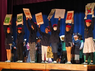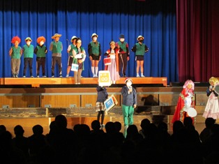 | 11月25日(土) 【学芸会】 ”150年の歴史にみんなの一幕を刻もう!!”のスローガンのもと、学芸会が開催されました。子どもたちは、校内学芸会よりもさらにレベルアップした演技を見せてくれました。たくさんのお客様の前で、緊張する様子も見られましたが、今までの練習の成果を、十分に発揮できたと思います。温かいご声援と盛大な拍手をありがとうございました。 学級閉鎖のため、今日発表できなかった2年生の演技は、12月1日(金)に行います。お楽しみに!! |