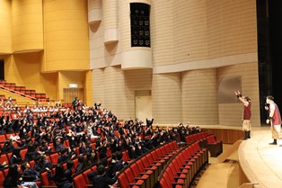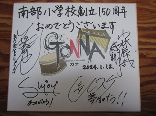 | 1月12日(金) 【創立150周年 記念式典】 今日、「南部小学校創立150周年記念式典」が行われました。多くの御来賓の方々、保護者・地域の方にもご来場いただき盛大に開催することができました。 第1部では、16名の児童実行委員のナレーションによる「南部小学校150年のあゆみ」が上映されました。150年という長い時間を感じたのではないでしょうか。 第2部は、記念イベントとして、「GONNA」による和太鼓×マリンバの演奏を聞きました。迫力のある演奏を聞いたりGONNAの皆さんと一緒に手拍子を打ったりして楽しみました。最後に、金管バンド・バトン部がGONNAさんとコラボレーションし、校歌を演奏しました。GONNAさんのおかげで、とても楽しい時間になりました。 今日まで、南部小学校に関わってくださった全ての皆さんに感謝の気持ちでいっぱいです。ありがとうございます。これからも、南部小学校のことをどうぞよろしくお願いします。 |