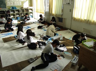 | 1月30日(火) 【書き初め作品展示】 【保健委員会企画】 全校児童の力作が、体育館に集まりました。低学年の子たちは、習字の作品を見て、「すごい」と歓声をあげていました。 南小タイムには、保健委員会の企画「かぜを予防するために運動しよう」が行われています。おにごっこやはないちもんめ、大縄、だるまさんがころんだ等、運動場のいたる所でいろいろな遊びが行われています。みんな笑顔いっぱいで、学年関係なく遊んでいます。 |