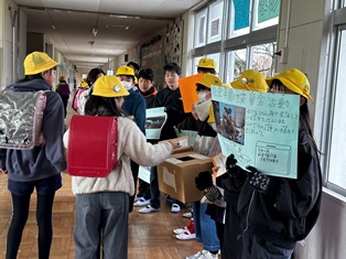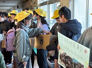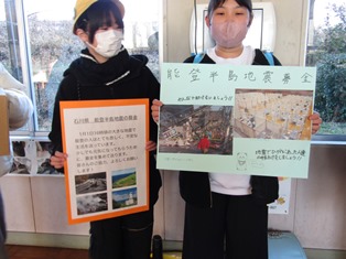 | 1月26日(金) 【義援金活動】 「能登半島地震への協力として募金活動をしたい!」という6年生の呼びかけで、23日から活動が始まりました。6年生全員が、4日間それぞれ担当の日を決めて、朝、昇降口に立ちました。 集まった義援金は、日本赤十字社を通して送ることを予定しています。南部っ子の気持ちが、能登半島のみなさんに届くことを願っています。 |