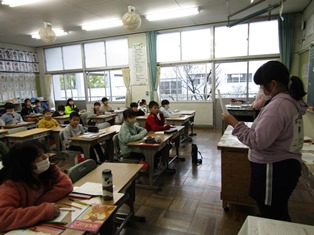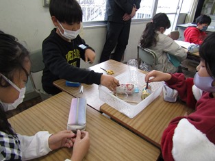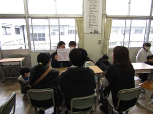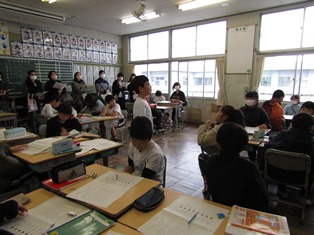 | 2月15日(木) 【授業参観】 今年度最後の授業参観でした。 1年生は、地域の方々にコマ回しを教えていただきました。上手く回るようになった子も多くうれしそうでした。 2年生は、できるようになったことを発表していました。体も心も成長したことを伝えることができました。 3年生は、磁石につく物とつかない物を調べて、磁石につく物は何かを見つけ出しました。 4年生は、1組は道徳、2組は国語の授業でした。2組では、文章内の間違った漢字を見つけて、正しい漢字に直していました。 5年生は、米について調べたことを、班ごとに発表しました。それぞれの班で、多くの工夫がされていました。 6年生の学習は、「化石を見つけよう」。理科室と図工室からは、硬い石を叩く音が聞こえてきました。 今日も多くの保護者の方に参観していただき、ありがとうございました。 |