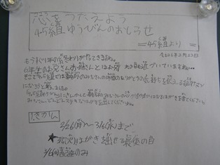 | 2月7日(水) 【卒業に向けて…】 2月に入り、6年生は卒業に向けて、少しずつ動き始めています。 「卒業プロジェクト」では、グループに分かれて活動をしています。学校のため、下級生のために、自分たちができることを考えて実行できるよう計画を立てたり、思い出作りのために何ができるか、アイデアを出し合ったりしていました。 6年生といっしょに過ごせる日も、残り少なくなってきました。たくさんの思い出ができるといいですね。 6年生の皆さん、残りの日々も南部小のことをよろしくお願いします! |
