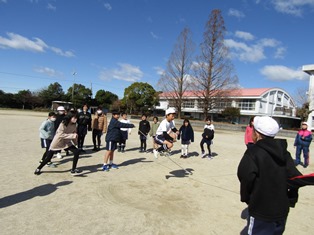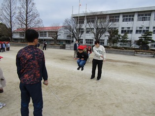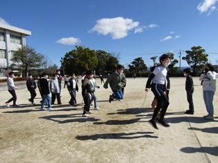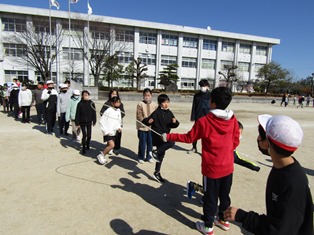 | 2月28日(水) 【大縄跳び大会②】 「いいじゃんスポーツチャレンジinみよし」の8の字跳びに、今日は5年生が挑戦しました。どちらの学級も、回し手が上手に回して、すごい速さで跳んでいました。 今日の給食の時間も、校長室から楽しそうな声が聞こえてきました。 |
