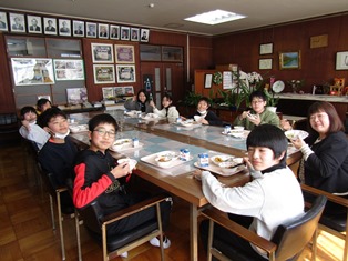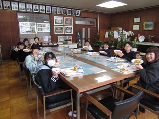 | 2月29日(木) 【大縄跳び大会③】 【切干大根作り】 「いいじゃんスポーツチャレンジinみよし」の8の字跳びに、今日は1,2年生が挑戦しました。どちらの学年も、元気よく数えながら跳んでいました。 1年生は、切干大根の作り方を「お野菜先生」に教えてもらいました。とても力のいる作業だということを知り、驚いていました。 6年生は、笑顔いっぱいで校長先生との会食を楽しみました。 |
