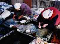 川などの流水に24時間ほど晒し、ソーダを洗い流すとともに、天日により繊維を白くします。