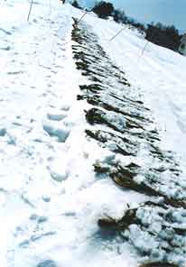 地元で産出されるコウゾを蒸して皮を剥いだ後、雪の上に広げ日光で晒す「雪晒し」をおこない繊維を白くします。以前はコウゾを灰で煮熟していましたが、障子紙に白さを求める消費者を満足させるため苛性ソーダで漂白するようになりました。