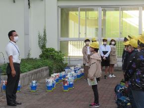 | 10月12日(月) 前期の終業式と後期の始業式を行いました。各学年の代表の児童が前期がんばったことと後期の抱負を話しました。校長先生のお話を聞き、少年の主張大会の表彰とサッカー部とバスケットボール部の表彰がありました。発表を聞きながら、どの子も、前期がんばったことを思い浮かべ、後期こんなことをがんばろうと考えていました |