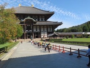 | 10月7日(水) 6年生が修学旅行から帰ってきました。天候にも恵まれ、6年生全員が元気に参加することができ、楽しい思い出をたくさん作ることができました。ありがとうございました。2日間の様子を写真でお伝えします。1日目は京都を2コースに分かれて、宇治平等院、二条城、銀閣、北野天満宮、龍安寺、清水寺などを見学し、さと茂旅館に宿泊しました。2日目は、奈良公園内をグループごとに見学したあと、法隆寺の見学をしました。 |