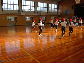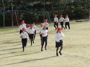 | 11月24日(火) 3連休明け、体育館で5年生が学年で「天下統一」というボールを使ったおにごっこをしました。体育館からは楽しそうな声が響いていました。4年生は、5分間走に挑戦です。男女どちらから挑戦するか先生が渾身のじゃんけんを行い、女子から行うことに。5分間を走り切るこつを教えてもらって元気よく駆け出していきました。みんな最後まで頑張って走っていました。 |