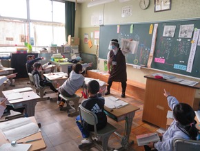 | 12月4日(金) 書写の授業は書き初めの練習です。お手本を見ながら書き方のコツを教わり、真剣に書いていました。いつもとは異なる大きさの紙に書くので、バランスよく書くためにはたくさん練習が必要です。2年生では国語科「お手紙」の研究授業が行われ、子どもたちは話す人の方を見て友達や先生の話を一生懸命聞いていました。 |