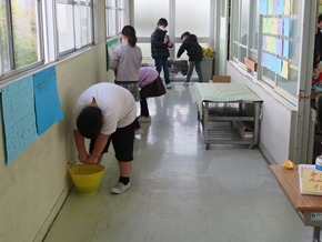| 12月15日(火) 今日は大掃除です。自分の机の中、ロッカー、下駄箱、教室の中などをきれいにしました。今年一番の寒さでしたが、みんな一生懸命学校をきれいにしようと頑張りました。 |